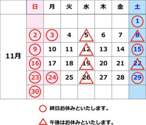2025年11月 休診日のお知らせ